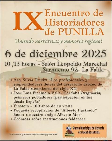 La Municipalidad de La Falda hace extensiva la invitación a sumarse al IX Encuentro de Historiadores de Punilla.