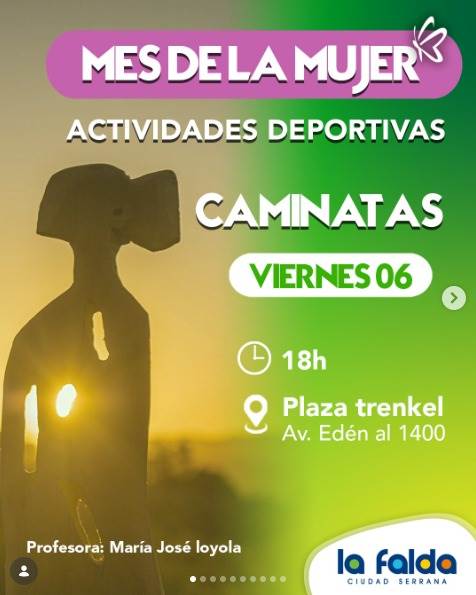 ☮️La Municipalidad de La Falda te invita a que te sumes a las distintas actividades deportivas que tendrán lugar en Marzo en el marco del MES DE LA MUJER. ✅Actividades gratuitas 🙌Te esperamos!