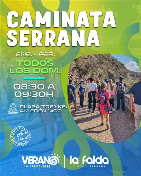 Conectá con la naturaleza, la ciudad y experiencias únicas al aire libre. CAMINATA SERRANA Enero – Febrero Todos los DOMINGOS 08 a 09H Plaza Trenkel – Av. Edén 1400 Actividad gratuita Sumate, te esperamos!! 🤩